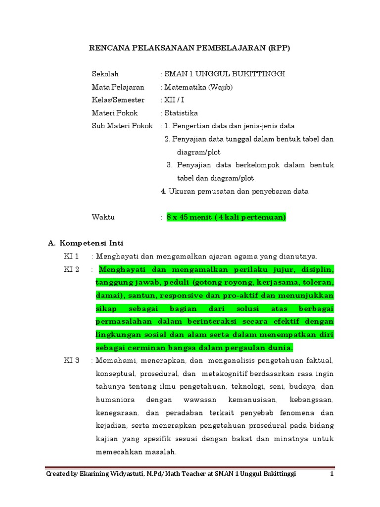Rpp Statistika Adiwiyata Sman 1 Bukittinggi Ekarining Widyastuti