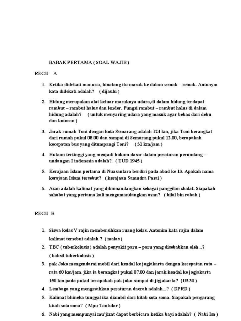 Soal Lomba Cerdas Cermat Sd Kunci Jawaban Soalujian Net