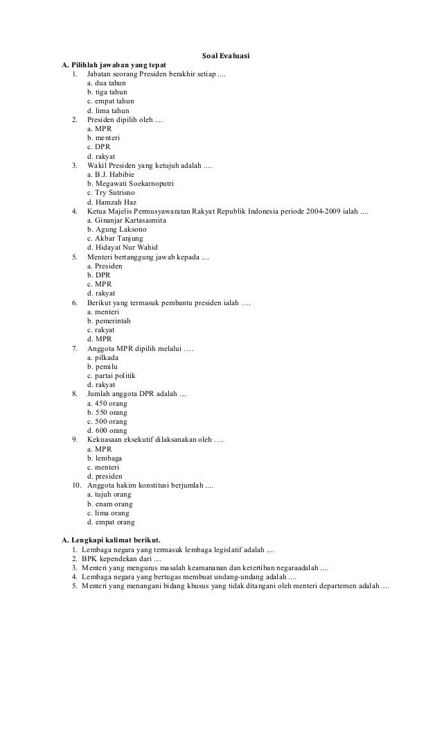 Soal Pkn Kelas 4 Sd Bab 3 Pemerintahan Pusat Dan Kunci Jawaban Bimbel Brilian