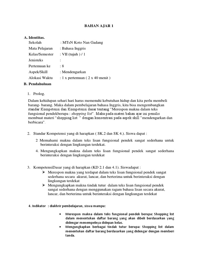 Bahan Ajar Ujian Shopping List